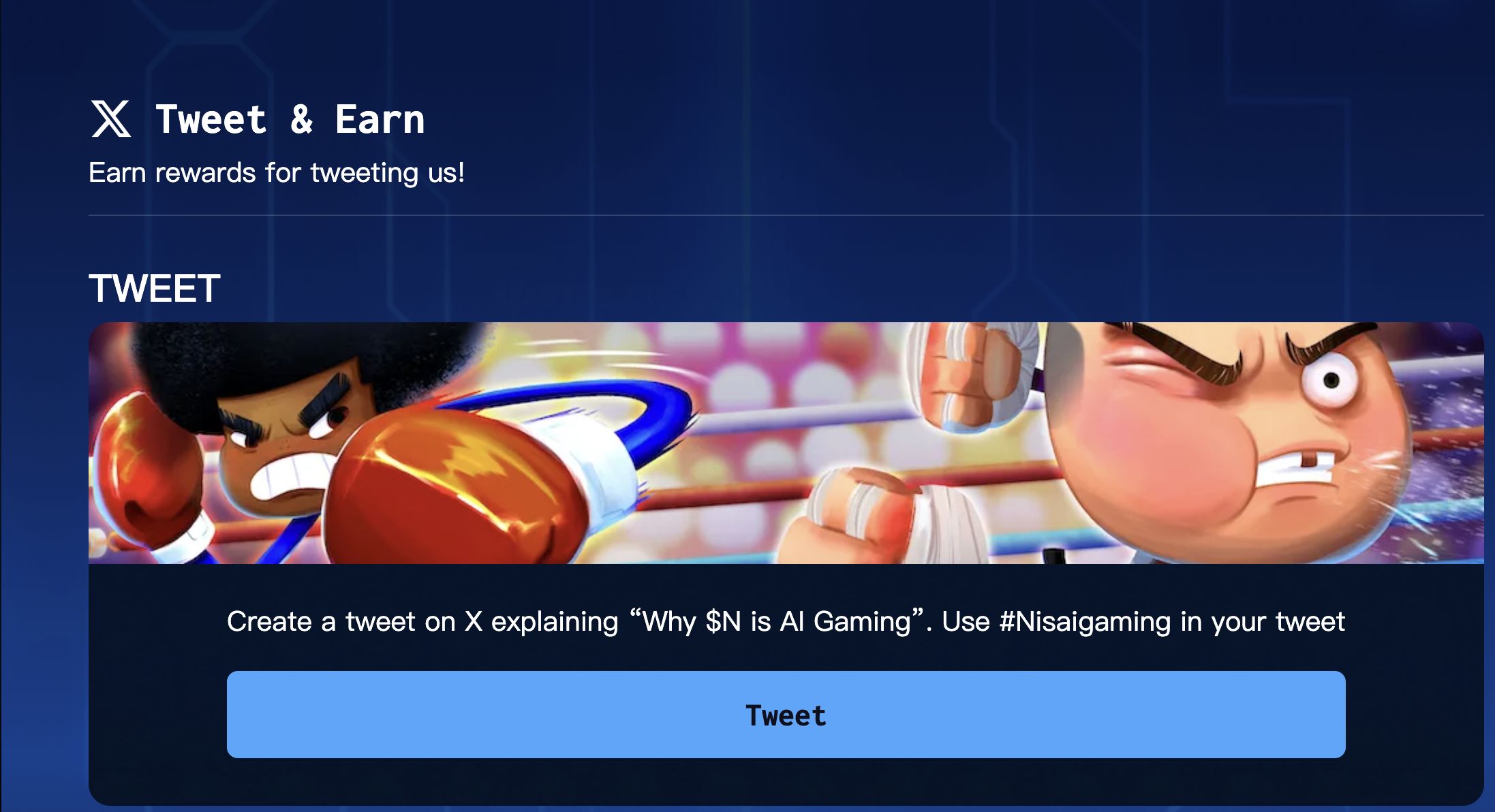 比如在 X 上以 "Why $N is AI Gaming" 为主题写一篇推文,打上#Nisaigaming 标签,就有积分获得TGE积分,不局限于KOL,人人皆可参与。