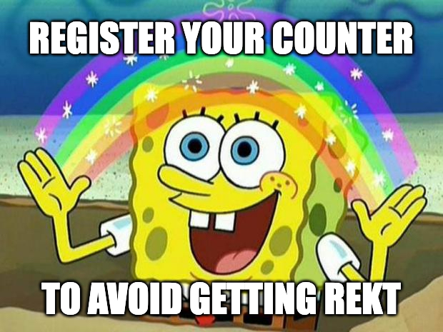 另外,记得在 Spam 前进行注册!Spam 的计数器按这样的原理工作:每天都会创建一个新的计数器,在第 1 天发送交易,必须在第 2 天注册,从第 3 天开始,可以随时铸造 SPAM。