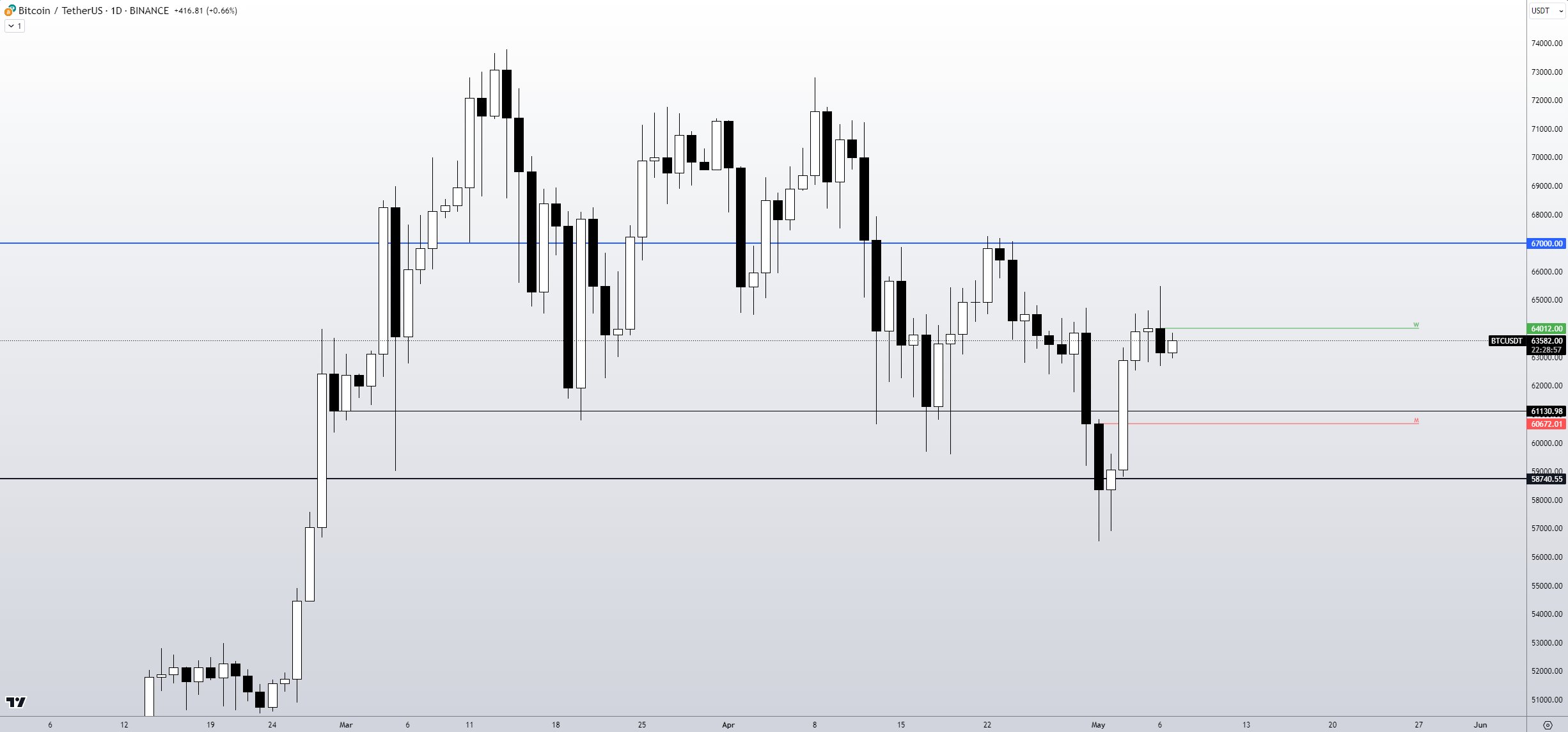 比特币交易员在比特币价格攻击64K美元流动性时标出关键价位