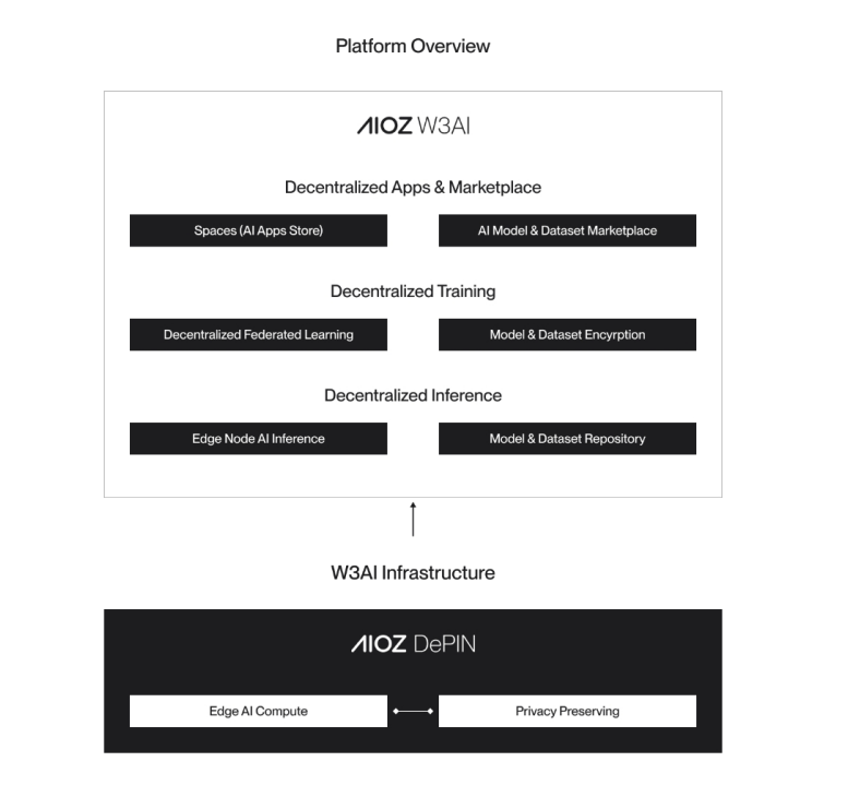 向 AI 赛道靠拢,AIOZ 一个关键的举措就是 W3AI --- 一个兼有基建与应用的双层架构。