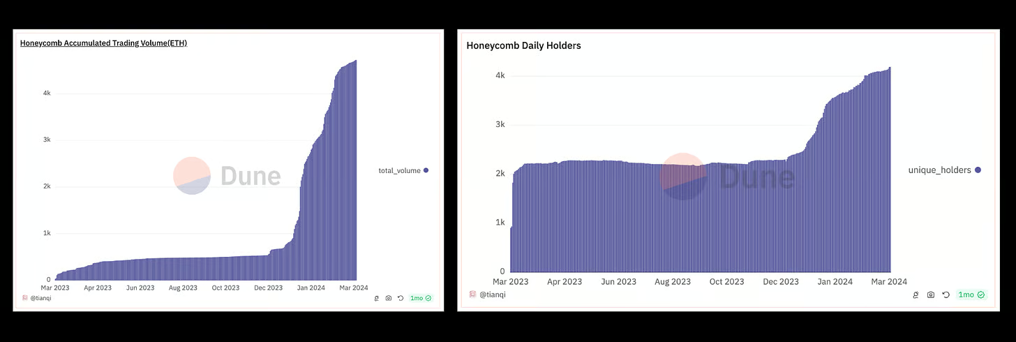 值得注意的一件趣事是,早期持有者得到了丰厚回报(例如Chainlink,Axie等),你的社区自主繁荣,几乎形成了自己的生命。以“The Honey Jar”为例,这是一个由 Janitoor领导的Berachain社区运营项目。Jani最初是一位Bong Bear的大户,现在运营着一个超过20人的团队,已经吸引了超过10万用户加入到Berachain生态系统中。