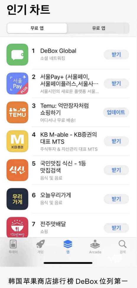 而另一边,DeBox的用户也在以惊人的速度增长。得益于“免费”与“钱包登陆”的简单步骤,DeBox成为了大部分新用户体验加密社交的第一站,不到半年时间,用户从110万增加至近一千万,活跃用户也从2万增加至超过80万,甚至一度登顶韩国苹果商店排行榜第一。
