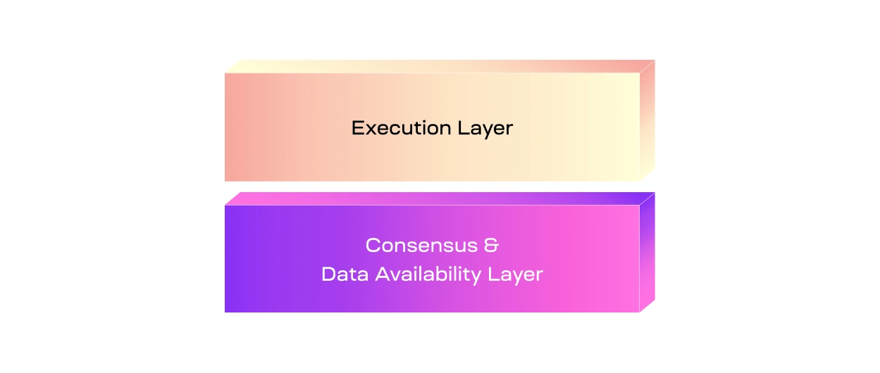 在这个模块化堆栈下,执行层将是主权(sovereign)的,它将其交易发布到另一个区块链,通常用于排序和数据可用性,但处理自己的结算。在模块化堆栈的上下文中,主权 Rollup 负责执行和结算,而 DA 层则处理共识和数据可用性。