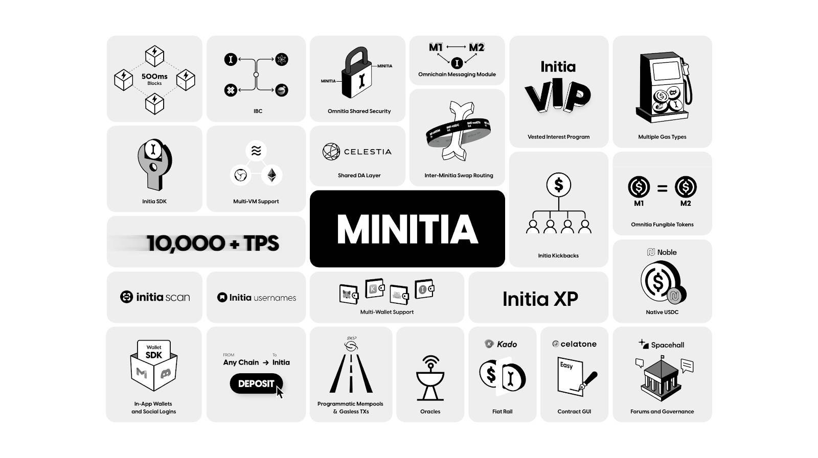 Initia 提供一套完整的技术和用户产品堆栈,以简化用户和开发者的体验,包括: