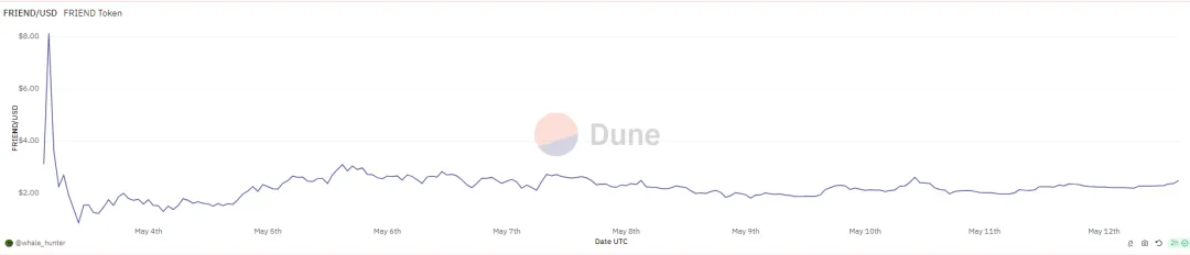 FriendTech在v2发币,消化空投抛压后代币价格较为平稳。
