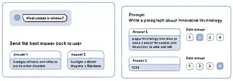 甚至是简单的点赞或点踩图标,提示你评价回答的有用性,也是模型的一种 RLHF 训练。