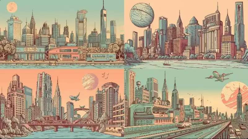 四张图片,如果你浏览艺术家的插图,可能很容易被误认为是他们的作品。这些图像是在 30 秒内由 AI 基于单个输入图像生成的。我要求『纽约』,但主题真的可以是任何东西。在其他模态,如音乐中,也可以进行类似的复制。