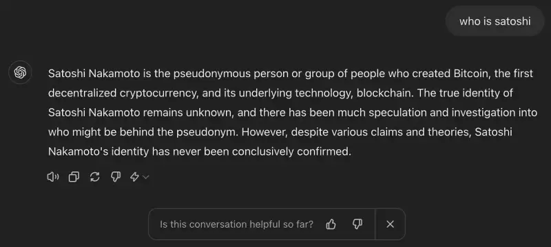 3. 实际上回答问题:中本聪是创建比特币、第一种去中心化加密货币及其底层技术区块链的化名人物或团体。