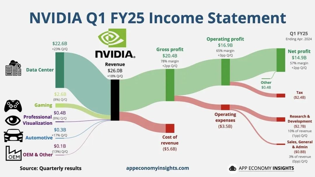 两个多月前英伟达公布第一季度业绩,股价次日飙升 10%,此后市值一路狂涨,一度取代微软成为全球市值榜首。