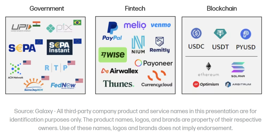 区块链的禀赋,就是金融基础设施,本身的构造初始就是用于解决支付清算的最终一致性问题。区块链将作为支付交易的底层基础设施。比特币、以太坊和 Solana 等 Layer1 区块链以及 Optimism 和 Arbitrum 等通用 Layer2 环境都在向市场出售区块空间。它们在速度、成本、可扩展性、安全性、分布渠道等多个方面展开竞争。随着时间的推移,支付用例将成为区块空间的重要消耗者。