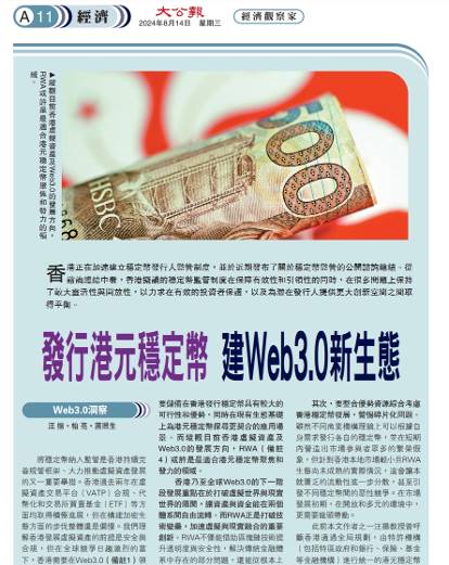 欧科云链研究院资深研究员蒋照生近日与香港科技大学副校长兼香港Web3.0协会首席科学顾问汪扬、零壹智库创始人兼CEO柏亮,在大公报发布联合署名文章 ——《Web3.0洞察 / 发行港元稳定币,建Web3.0新生态》,提议香港稳定币发展应聚焦RWA生态,并要重点关注稳定币与RWA的开放性、整体性与安全性等问题。文中表示,香港稳定币现阶段面临的最大问题不在于谁来发,而在于让谁来用,找到适合的场景和商业模式是香港稳定币持续发展的关键。围绕虚拟资产交易需求,在香港重发美元稳定币意义并不大。相关机构要深入Web3生态,从资产端尝试更多创新,将RWA作为现阶段稳定币聚焦和发力的主要领域。