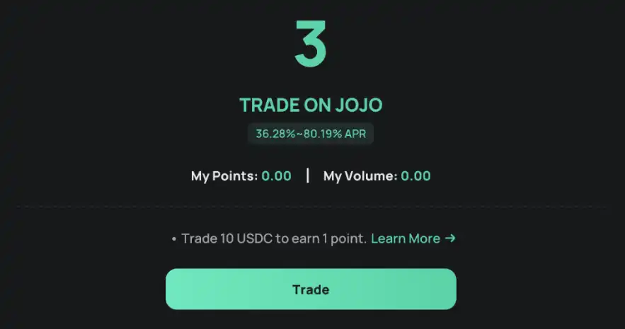 JOJO 代币将根据您每日赚取的 JOJO 积分按比例分配,这些代币将在第一季结束后可以领取。以下是获得 JOJO 积分的主要方式: