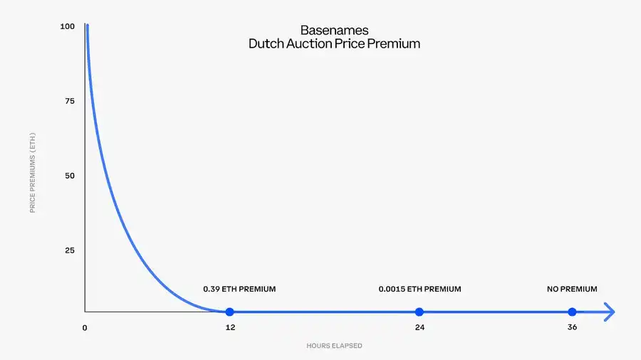 同时,Base 官方补充表示,Basenames 将透过荷兰式拍卖机制(Reverse auction)销售,以确保所有用户都有公平的机会获得自己想要的名称: