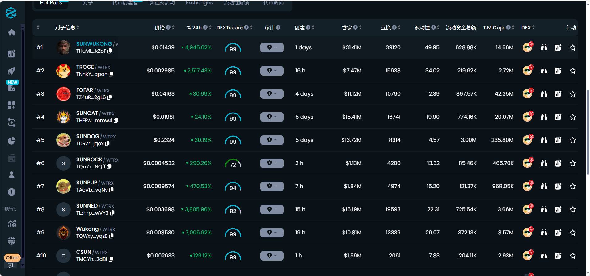 所谓扫链,就是利用各种链上工具即时监控到各种资产发行的新动态,包括但不限于优质标的新资产发行、链上大额交易、固定时段交易量排行、特定监控的地址(聪明钱)买入卖出、熟悉的 Dev 再开新盘等等......