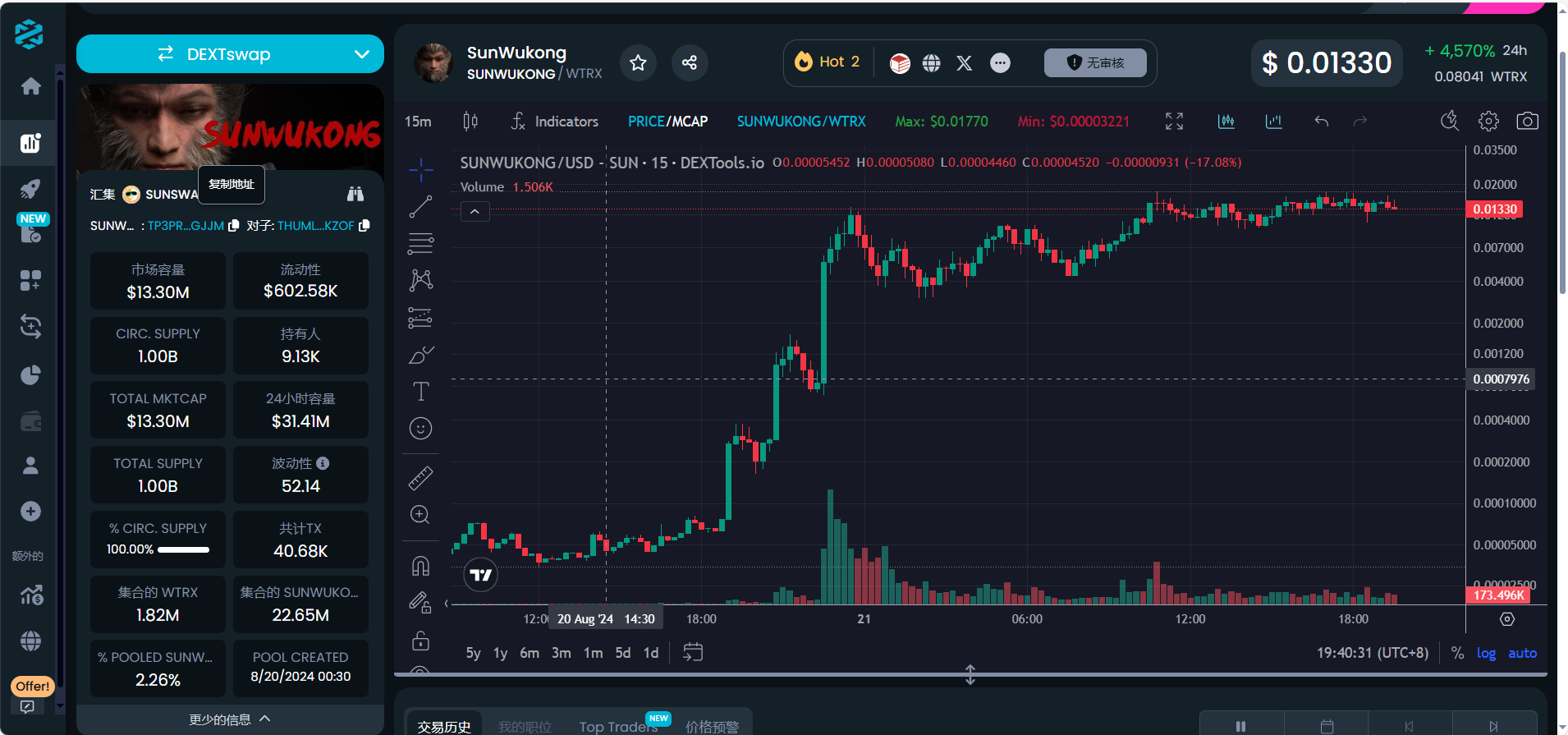dextools 同样已经支持 TRON 资产监控,可以及时查看各种 Pump 的内盘价格,体验感比较丝滑。