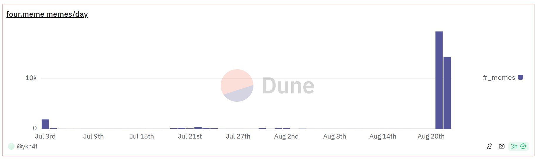 只不过不仅散户们想到这点,镰刀们也想到了,各种已经熟练至极的 DEV 闻着味就来到了 BNBChain,驾轻就熟地进 Four.Meme 开始布局,24小时内 Four.Meme 的新资产发行数比以往时期的总和都要多上几倍,等到东八区的太阳升起时,热情满满的冲锋玩家赚没赚钱不清楚,但大多 DEV 应该已经吃饱喝足准备开启美好一天了。