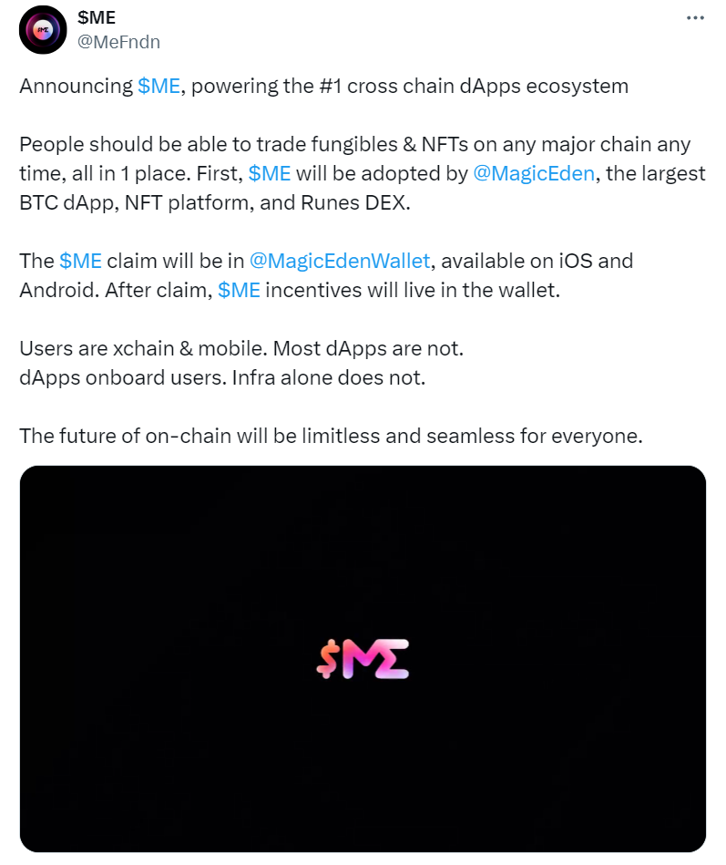 就在昨晚,NFT 市场 Magic Eden 终于官宣了其 Token $ME。