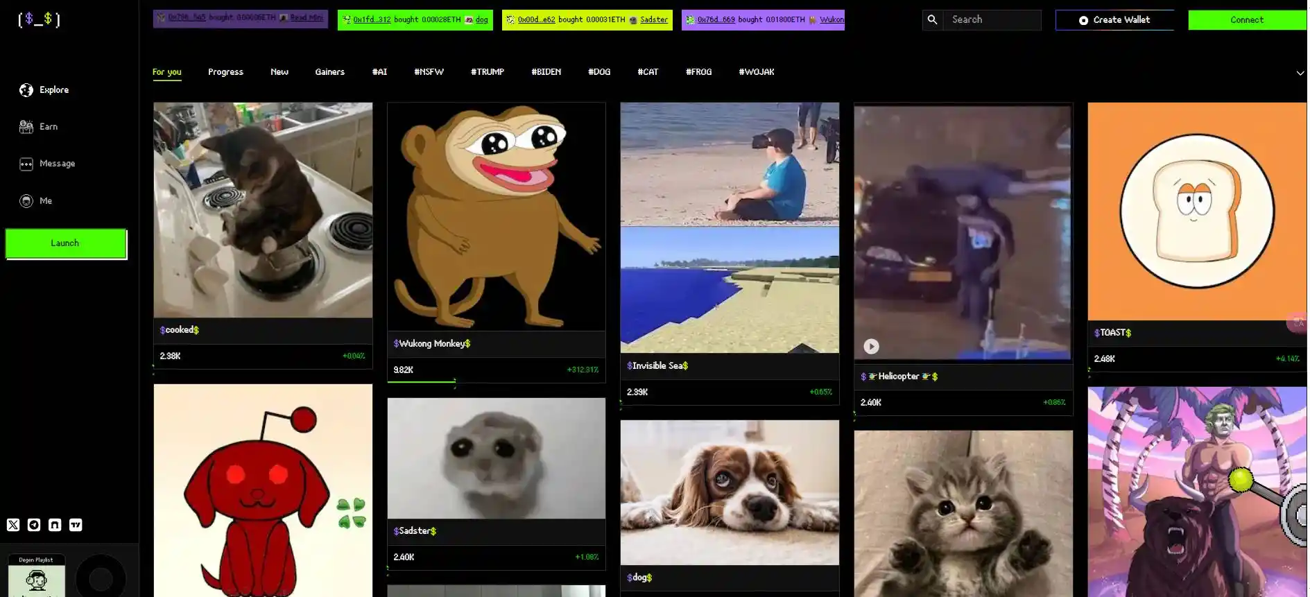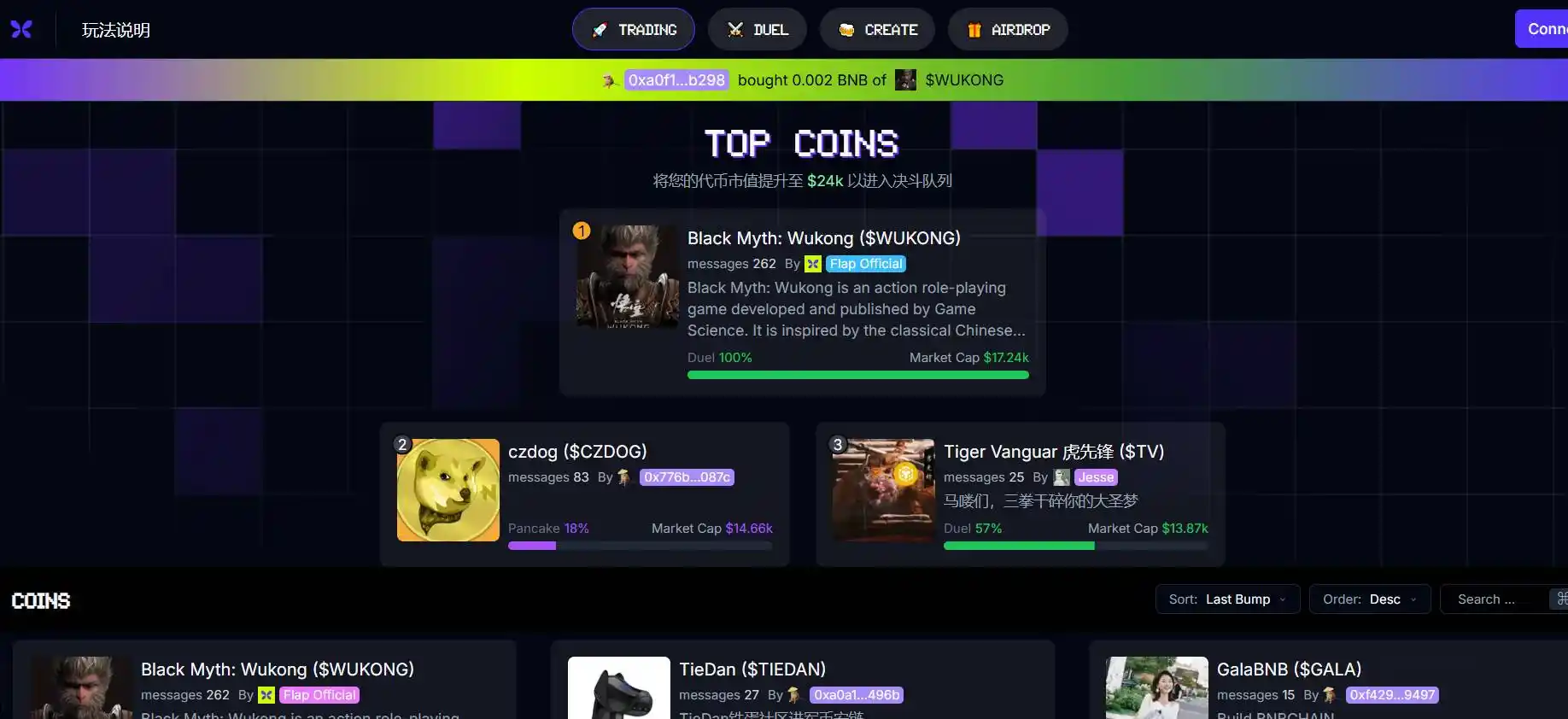 当然,虽然 $binancedog 一路暴涨引起人们 FOMO 进入 BNB,但架不住人性使然,大多数人想的不是买入跑出来的龙 1,而是寻找二线的机会,期待有能复刻龙 1 走势的潜力股一飞冲天。