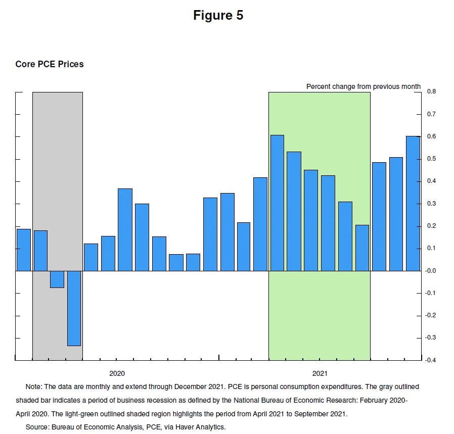 一段时间内,数据与暂时性通胀的假设一致。2021年4月至9月,核心通胀的月度读数每月都在下降,尽管进展比预期缓慢。