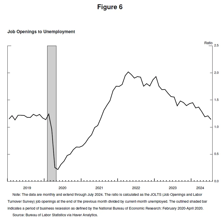 与疫情相关的供需扭曲,以及能源和商品市场的严重冲击是高通胀的重要驱动因素,它们的逆转也是通胀下降的关键部分。这些因素的消退(时间)比预期要长,但最终在随后的通胀下降中发挥了重要作用。我们的紧缩货币政策促使总需求适度下降,这与总供应的改善相结合,降低了通胀压力,同时允许经济以健康的速度继续增长。随着劳动力需求的放缓,通过职位空缺的减少,职位空缺相对于失业的历史性高水平已经正常化,同时没有出现大规模和破坏性的裁员,从而使劳动力市场不再成为通胀压力的来源。