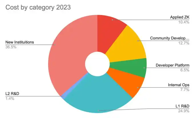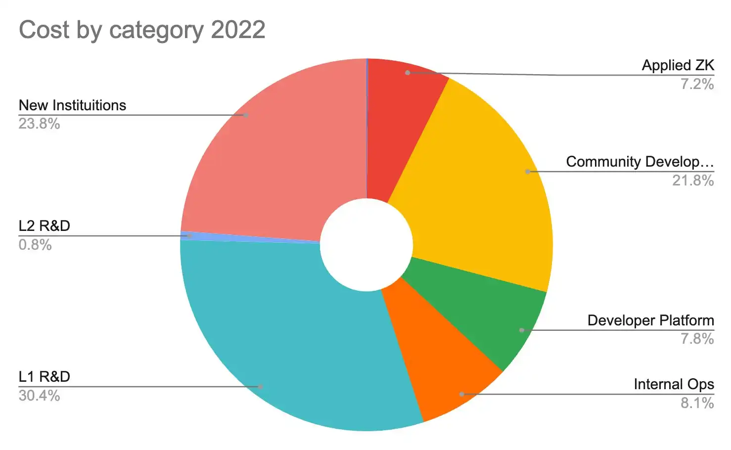 · L1 研发包括对外部专案团队的资助,也包括 EF 内部的支出,其中,内部支出占据 38% 的份额,外部支出占 62%。