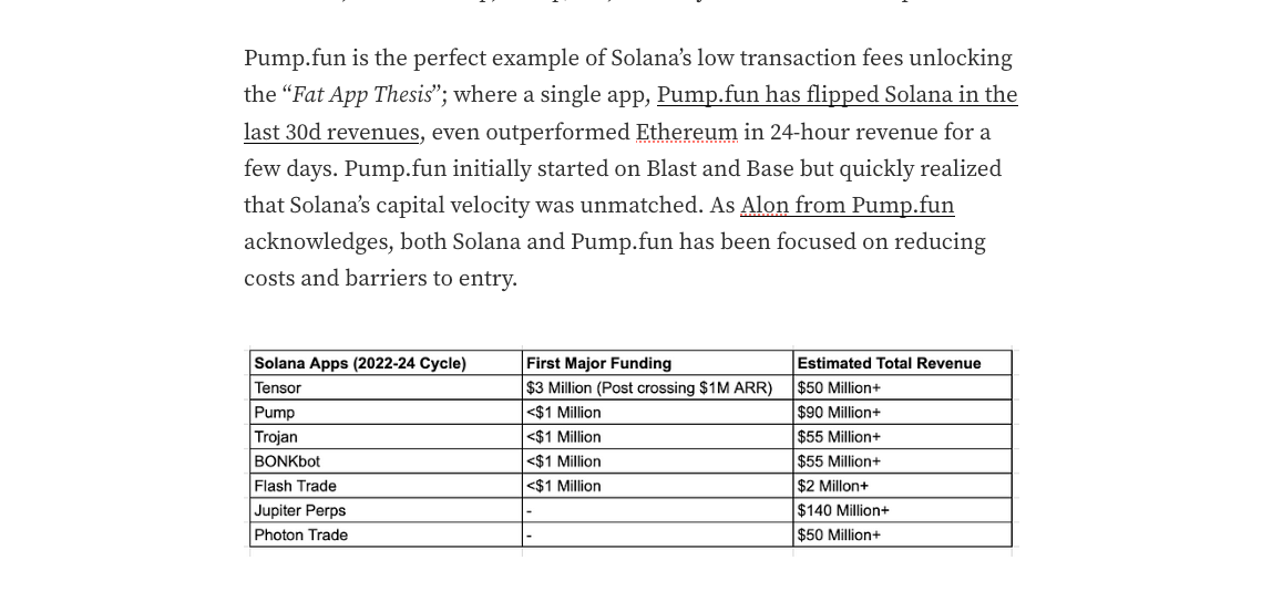 当风险投资者看到这里的数十亿美元退出时,他们很可能会遵循相同的基础设施操作手册来处理消费应用。我们已经看到许多年收入 1 亿美元的应用(例如 pumpdotfun)。