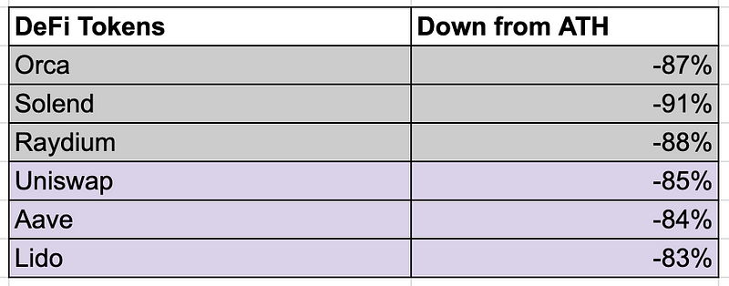 虽然有人可能会争辩 Solana DeFi 代币的价格大幅下跌,但以太坊的 DeFi 蓝筹股同样如此,这突显了治理代币在价值积累方面的结构性问题。