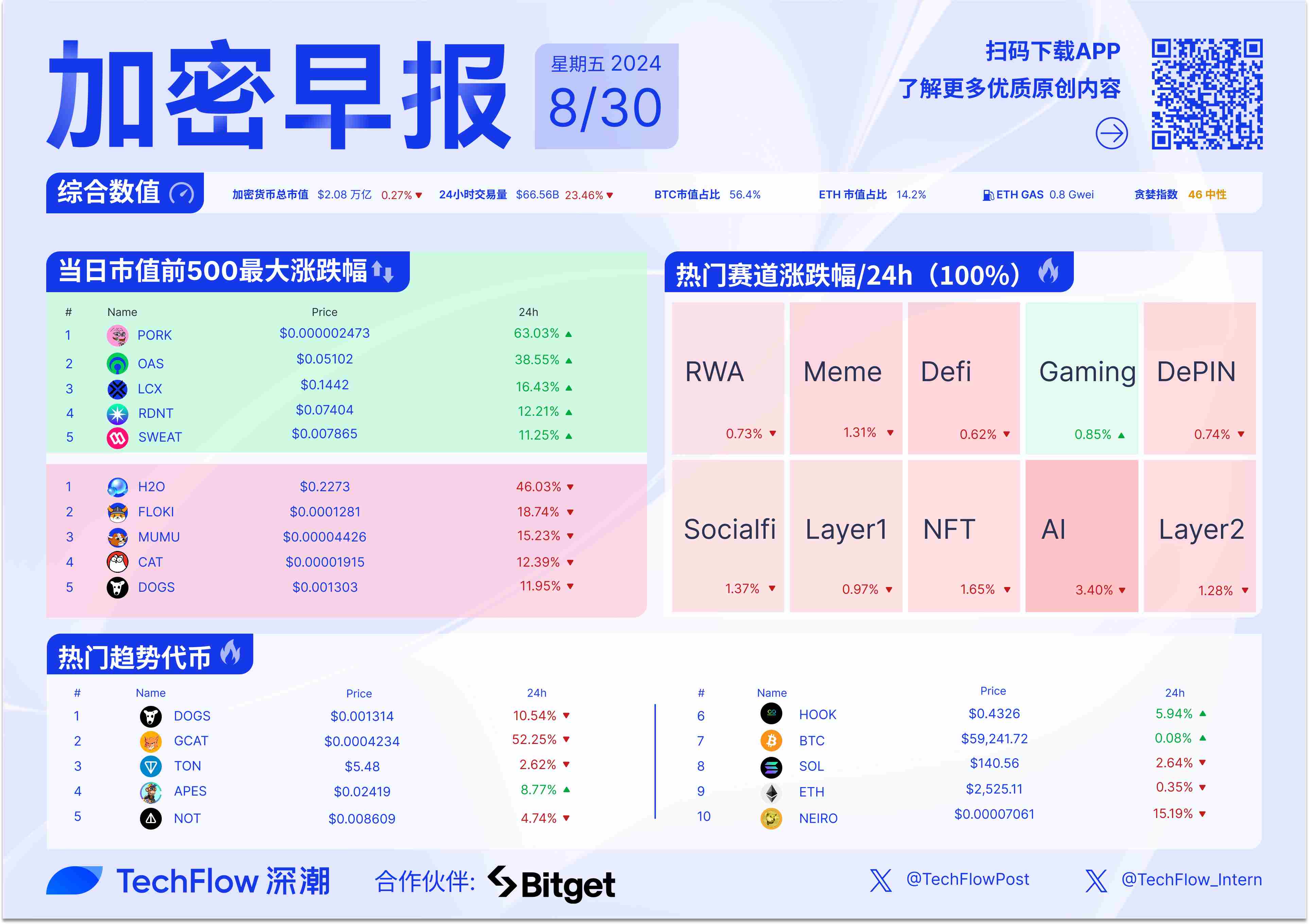 加密货币交易公司QCP Capital最新分析指出,英伟达昨晚公布的优异财报在今日加密货币市场引发了典型的"卖出消息"反应。受此影响,比特币价格回落至59,000美元,以太坊则在2,500美元附近低迷交易。QCP Capital表示,短期隐含波动率在现货价格下跌后短暂上升,但随后因英伟达财报而回落,从峰值下降约10个百分点。比特币和以太坊的风险反转直到10月仍偏向看跌期权,表明市场对下行风险保持谨慎。该公司预计,在下周非农就业报告发布前,市场波动性将继续下降,因市场正在为美联储可能的降息做准备。QCP Capital认为,由于近期缺乏催化剂,9月份加密货币价格可能会继续在区间内震荡。