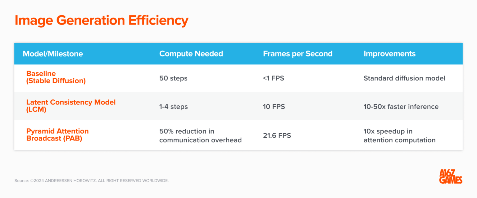 互动视频面临的最大技术障碍是达到足够快的帧生成速度,以便实时生成内容。Dream Machine 目前每秒生成约 1 帧。现代游戏主机的最低可接受目标是稳定的 30 FPS,而 60 FPS 则是黄金标准。在 PAB 等技术的帮助下,这在某些视频类型上可以提高到 10-20 FPS,但仍然速度不足。