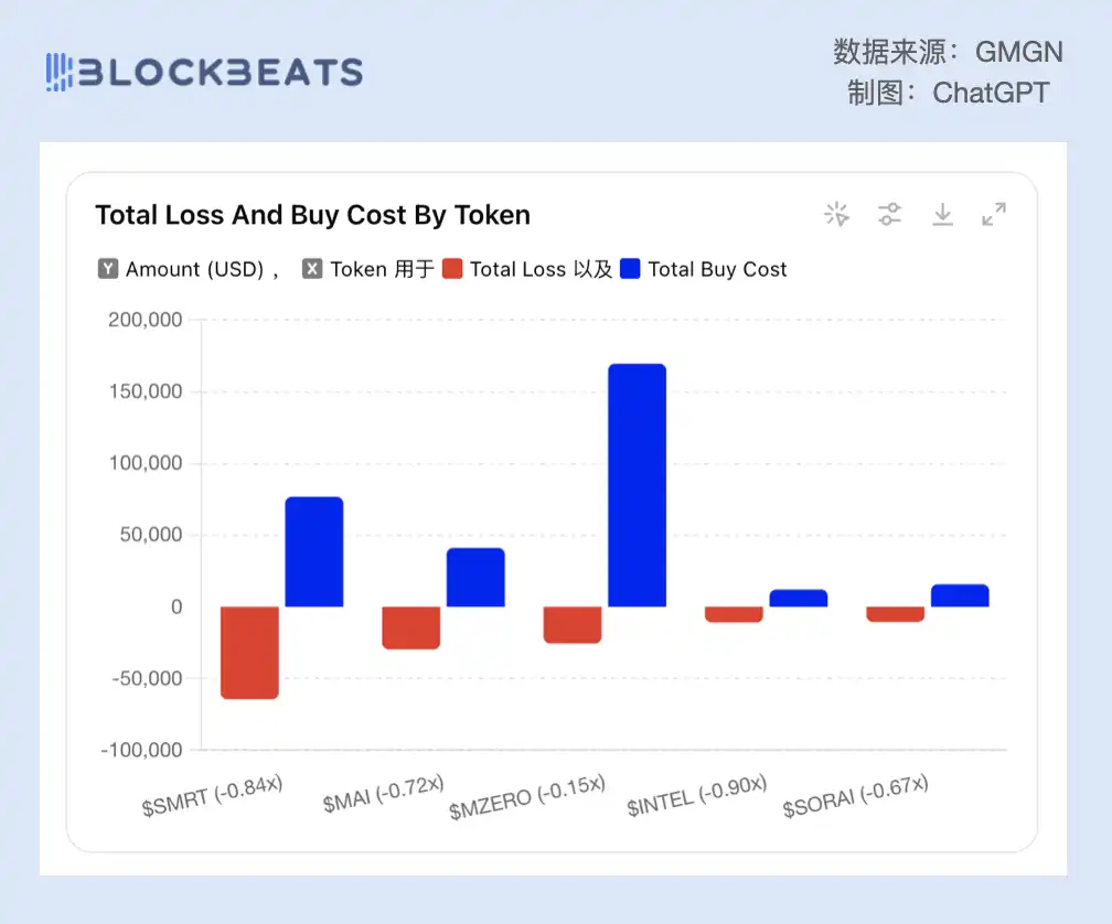 答案很显然是$GPU,实现了 126 万美元的利润回报,而且他在$GPU 上收获的回报是远大于其他币种的。$GPU 之后,几个让它赚了最多钱的币,一个是赚的不多了,另一个是倍数也不高了,看来一个人再怎么厉害和幸运,也就只能在一个币上做到封神。