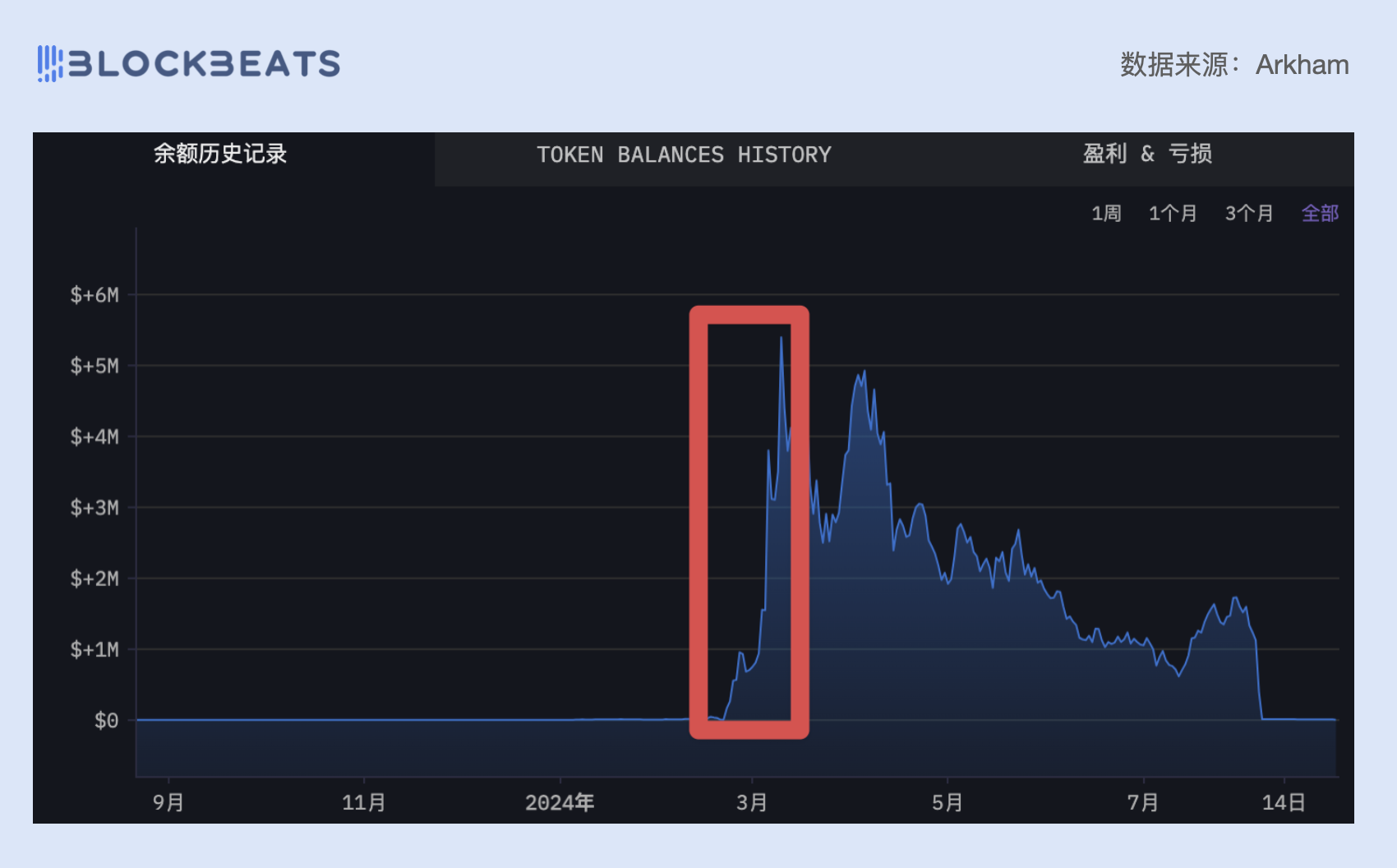 比如这个以太坊地址「0x384c7EbF6e87FE9816a2a23487042d33f2c04343」,在短短 20 天内从不名一文到浮盈超过 500 万美元。 基于链上数据分析工具 GMGN 统计了该地址(下文就叫它「巨鲸哥」)这一年多来全部的历史交易记录,试图从链上数据的角度为你揭示它的发家历程,或许我们的读者受到启发有朝一日也能成为这样一个传奇交易员。