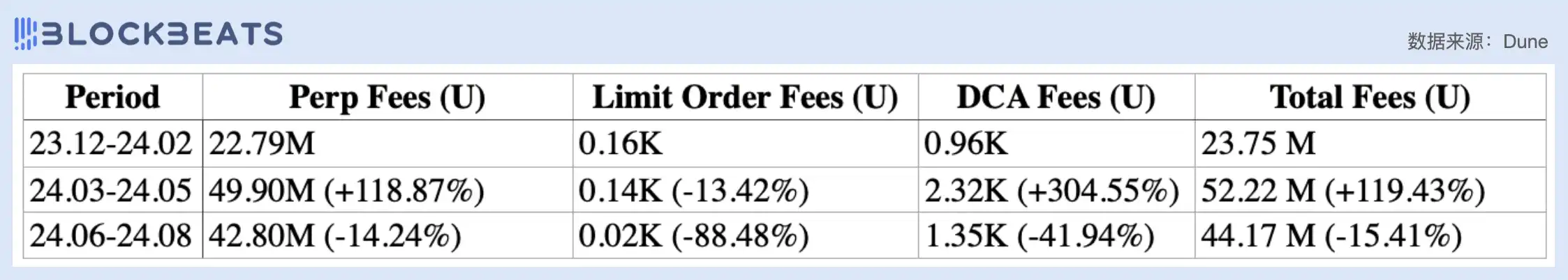Jupiter 盈利渠道主要包括限价单交易、DCA 订单交易和衍生品交易收入,以及由 Jupiter Launchpad 孵化或经营的项目将自身的部分代币分配给 Jupiter 的部分。目前在限价单、DCA 和永续合约开仓交易中,Jupiter 收取的费用比例分别为为 0.1%、0.1% 和 0.07%。根据截止至 8 月 23 日,算得 Jupiter 今年的收入为 1.2 亿美元。