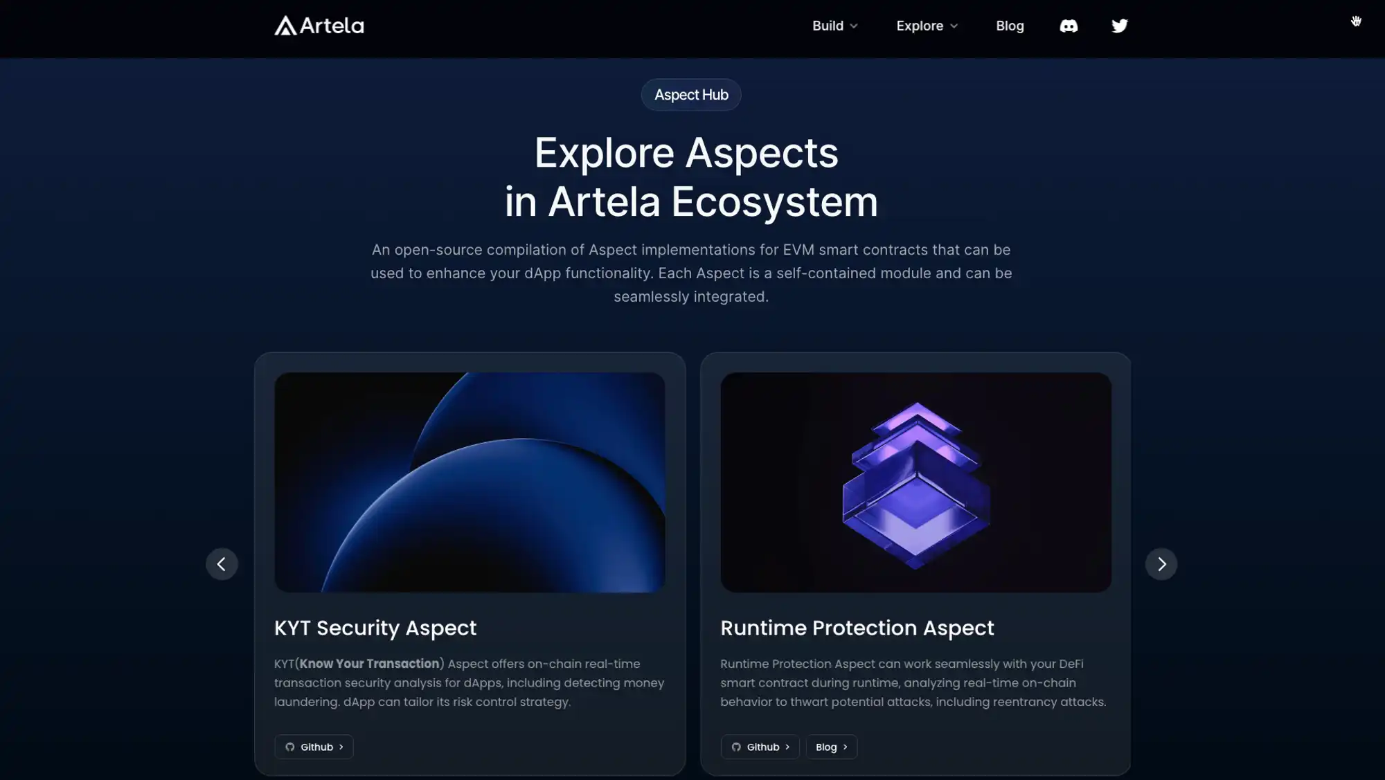 在 Artela 的Aspect Hub中,所有的 Aspect 创新用例均由社区贡献,其中一些极具创新性的链上用例令人瞩目。例如,Throttle Aspect 展示了如何将传统交易系统中的限流技术引入智能合约,帮助去中心化协议抵御女巫攻击和不公平行为。KYT Aspect 提供了链上实时交易安全分析,有效防御闪电贷攻击、套利和洗钱活动,展示了 EVM++在 DeFi 安全领域的强大功能。LinkLearner 利用链下模型训练和链上通过 Aspect 进行权重聚合,实现模型参数链上可自动调节的去中心化 AI 模型训练平台。