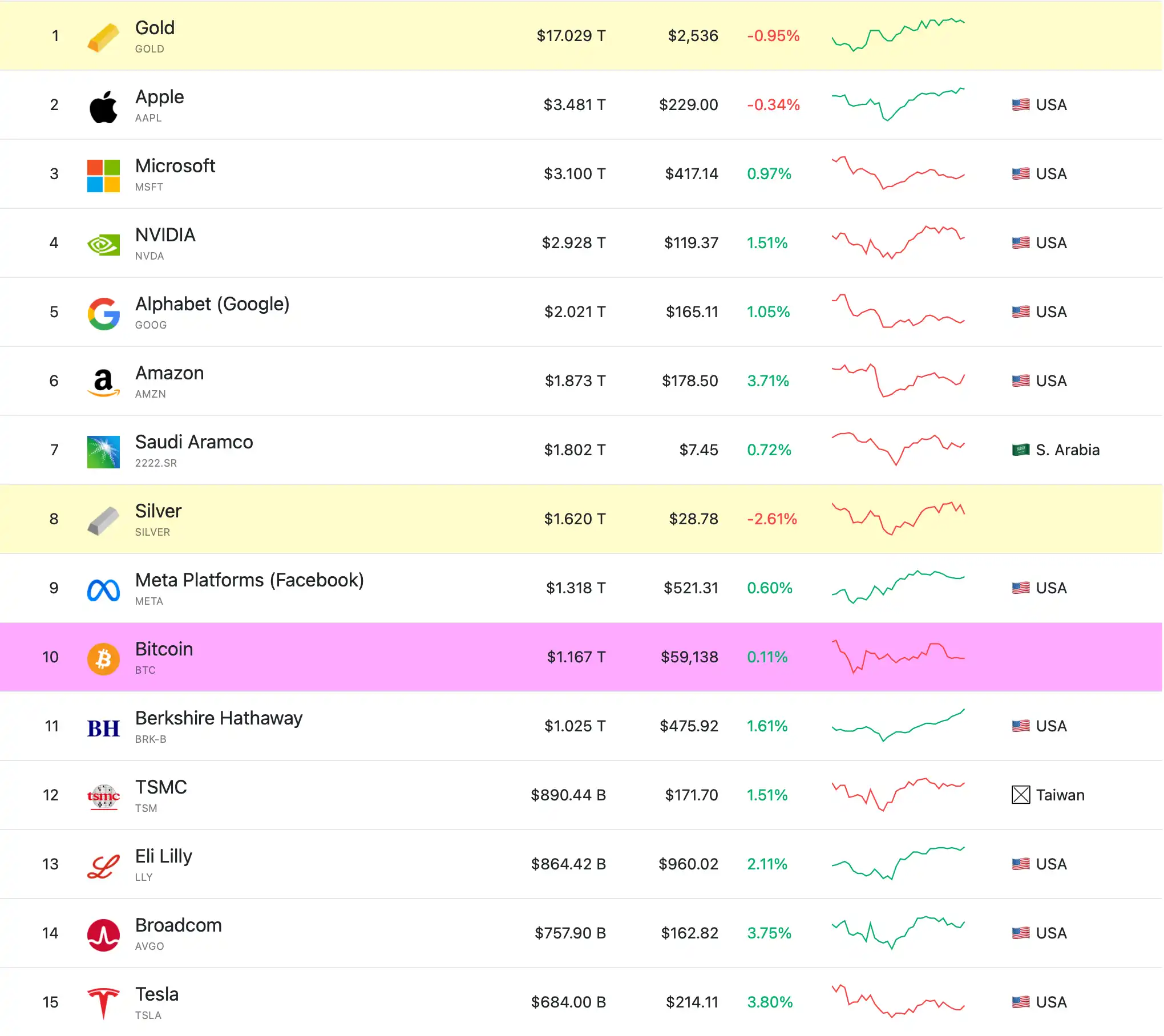 Ryan:好的,所以我想深入探讨这个问题。虽然它是一个规则的例外,但我想说,这也是很多 ETH 持有者,包括可能像 David 和我这样的 ETH 多头支持者的预期。比特币现在是全球第 10 大资产,以太坊是第 34 大资产。目前它的市值是 1.2 万亿美元。比特币逆转了重力或熵增等影响大市值资产的外部力量,达到了数万亿美元的规模。