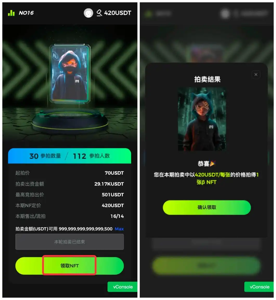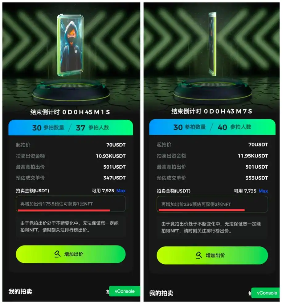 正如前文所说,每个人获得 NFT 数量是有限的,但不同等级 NFT 的挖矿效率存在差异。那么,如何拍卖获得更高等级的 NFT 呢?