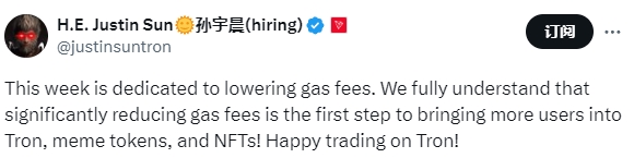 消息,9 月 2 日,Justin Sun 于 X 平台发文表示,本周将重点降低 Tron 网络的手续费。大幅降低手续费是吸引更多用户进入 Tron、Meme 和 NFT 的第一步。