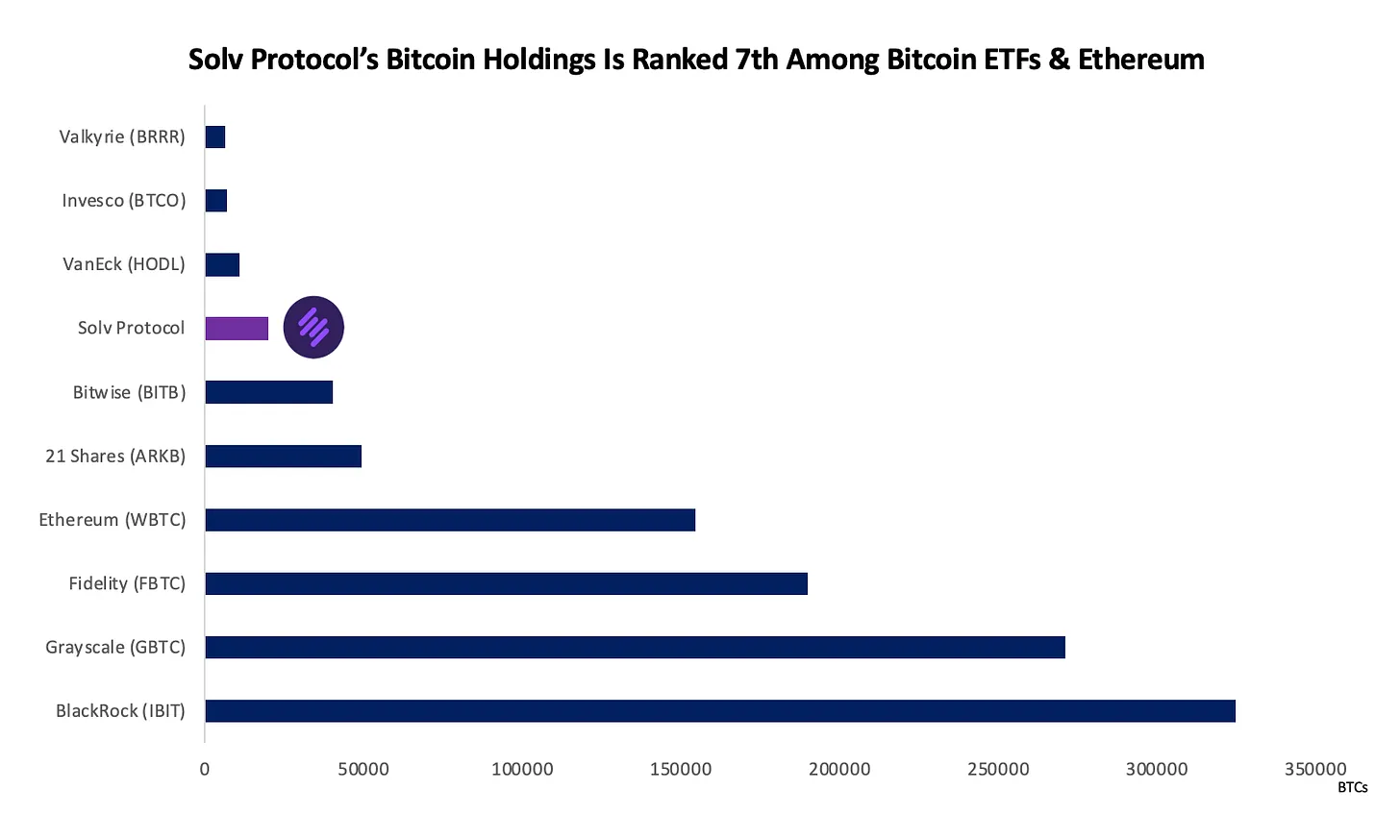 Solv 是比特币流动性质押代币的另一种选择,它通过 Babylon 的创新方法与 PoS 链共享比特币的经济安全。SolvBTC Babylon 是为即将到来的 Babylon 主网发布而设计的。自 SolvBTC 推出以来不到四个月,已有超过19,000个比特币在 Solv 上被质押,超过了一些整个链和比特币 ETF 的 BTC 持有量。(下图)