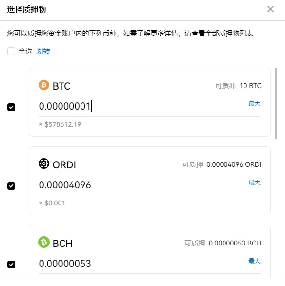 质押率:OKX 的初始质押率相对较低,基本上都为 70% 。