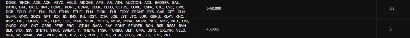 OKX 的强平质押率计算方式为=( 质押物价值 × 币种折扣率 - 借贷价值 × 维持保证金率 - 强平费用 ) / 质押物价值。强平质押率基本上都是 98.5% ,但每个代币折扣率差异较大,最高的为 BTC、ETH、USDT、USDC,折扣率根据金额不同在 0.9-1 之间变动,最低的为一系列山寨币如 NOT、1INCH、ACE 等,五万美元以内折扣率为 0.5 ,五万以上折扣率为 0 ,意味着借贷上限仅为 BTC 等币种的一半,并且最多借贷 5 万美元。