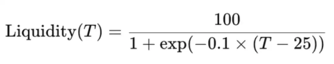 其中,TTT 代表交易次数。这个函数反映了随着交易次数的增加,价格以递减的速度上升,从而防止价格变得过于极端。流动性可以通过逻辑函数进行建模: