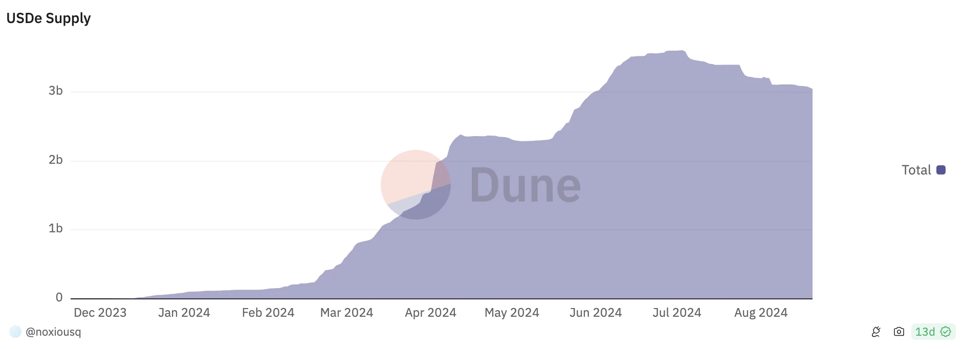 第二季活动期间,USDe 的供应量最终实现了从 13 亿到 30 亿的增长,Ethena 协议在此期间创造了超过 1.05 亿美元的收入,并向 sUSDe 质押合约分配了 5400 万美元的奖励,平均 APR 约为 15% 。