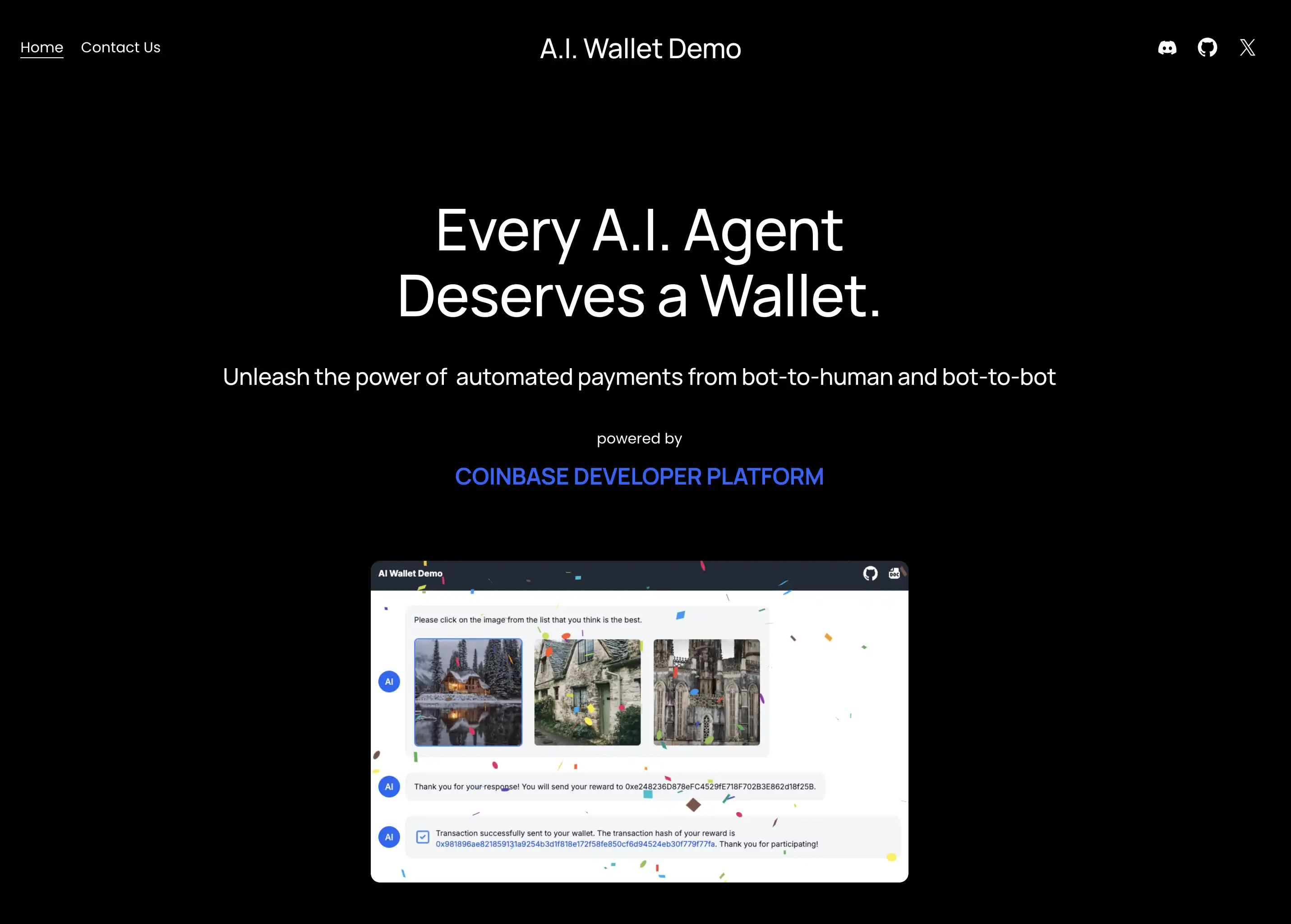 随后,Coinbase 在 8 月初不仅亲自下场做了一个 AI 向人类支付加密货币的 Demo 产品,紧接着还推出了一个「CDP AI Builder 计划」,为构建集成 Coinbase MPC 钱包的 AI 机器人开发者提供资助。
