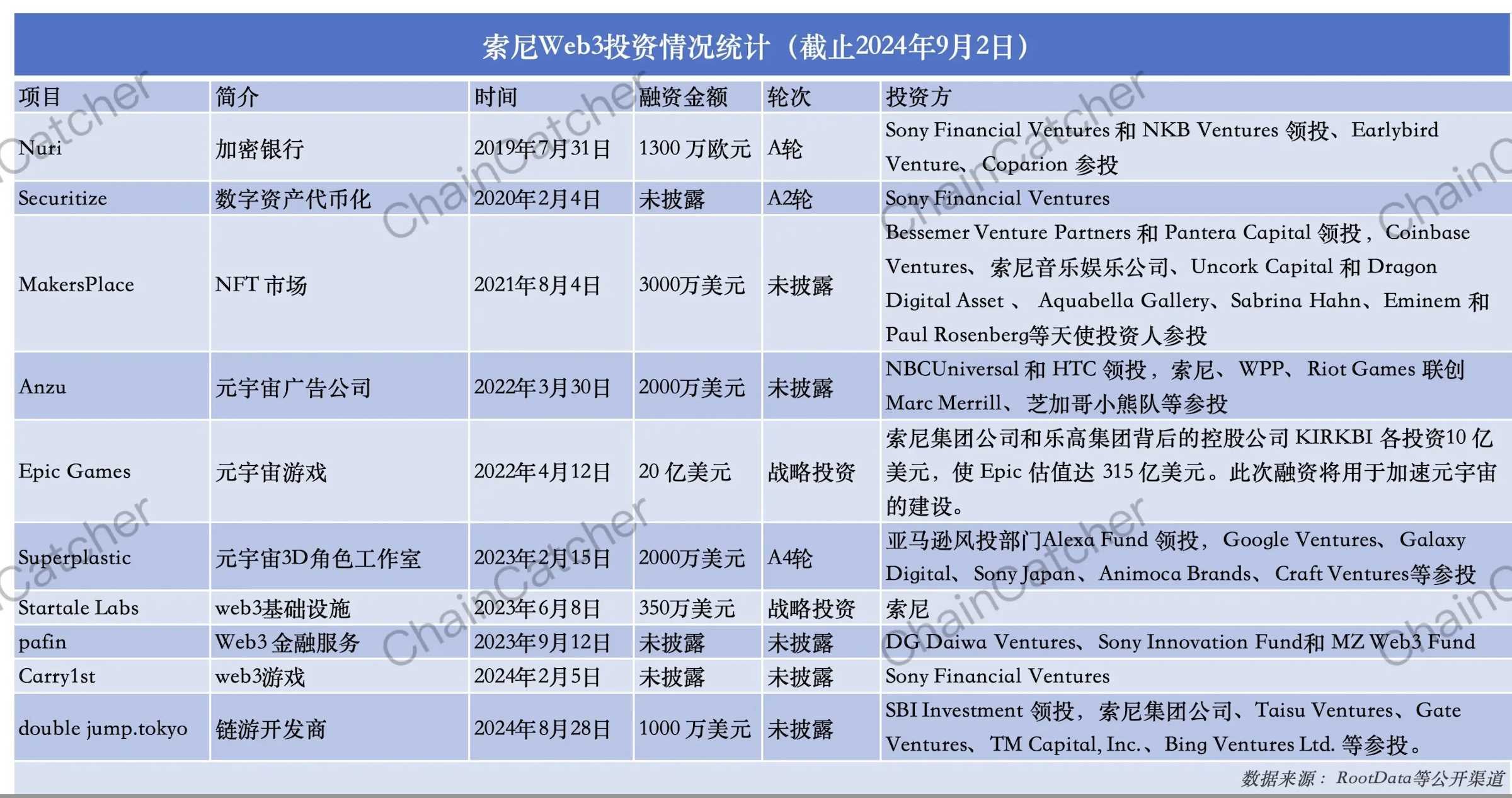 除了业务拓展层面探索 Web3 外,索尼也通过投资来布局 Web3。