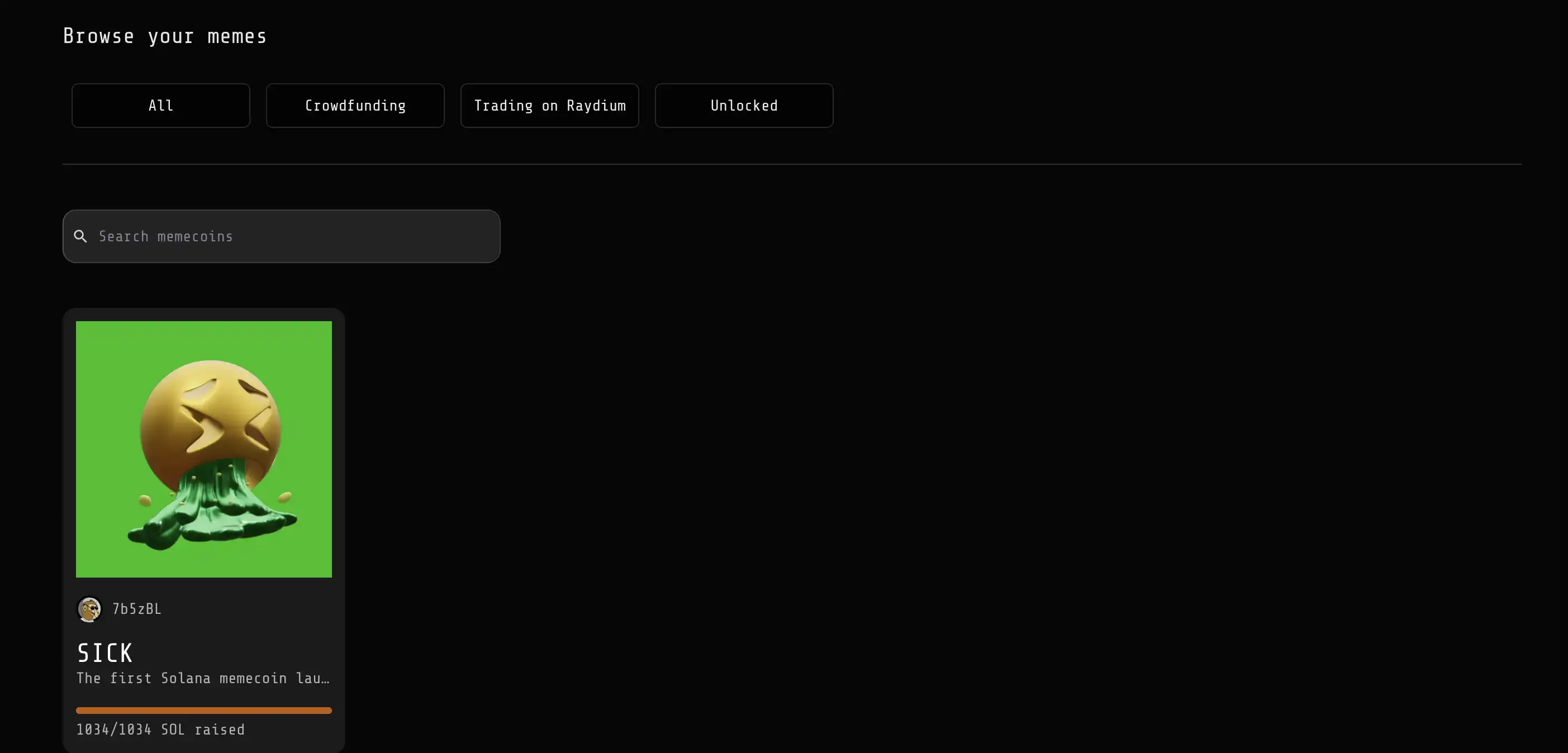 $SICK 是通过一个名为 Moonkebiz 平台发射的代币,所代表的项目为 Sick on SOL。$SICK 通过铸造 NFT(Sick of rug)筹集初始流动性,将所筹金额作为 meme 币的初始流动性池。Moonkebiz 采用了「stake-to-meme」的机制,质押者即 NFT 的持有者,当 meme 币的流动性池增加时,质押者份额将会解锁,NFT 持有者将受到相应金额的 SOL 和对应价值的 meme 币。