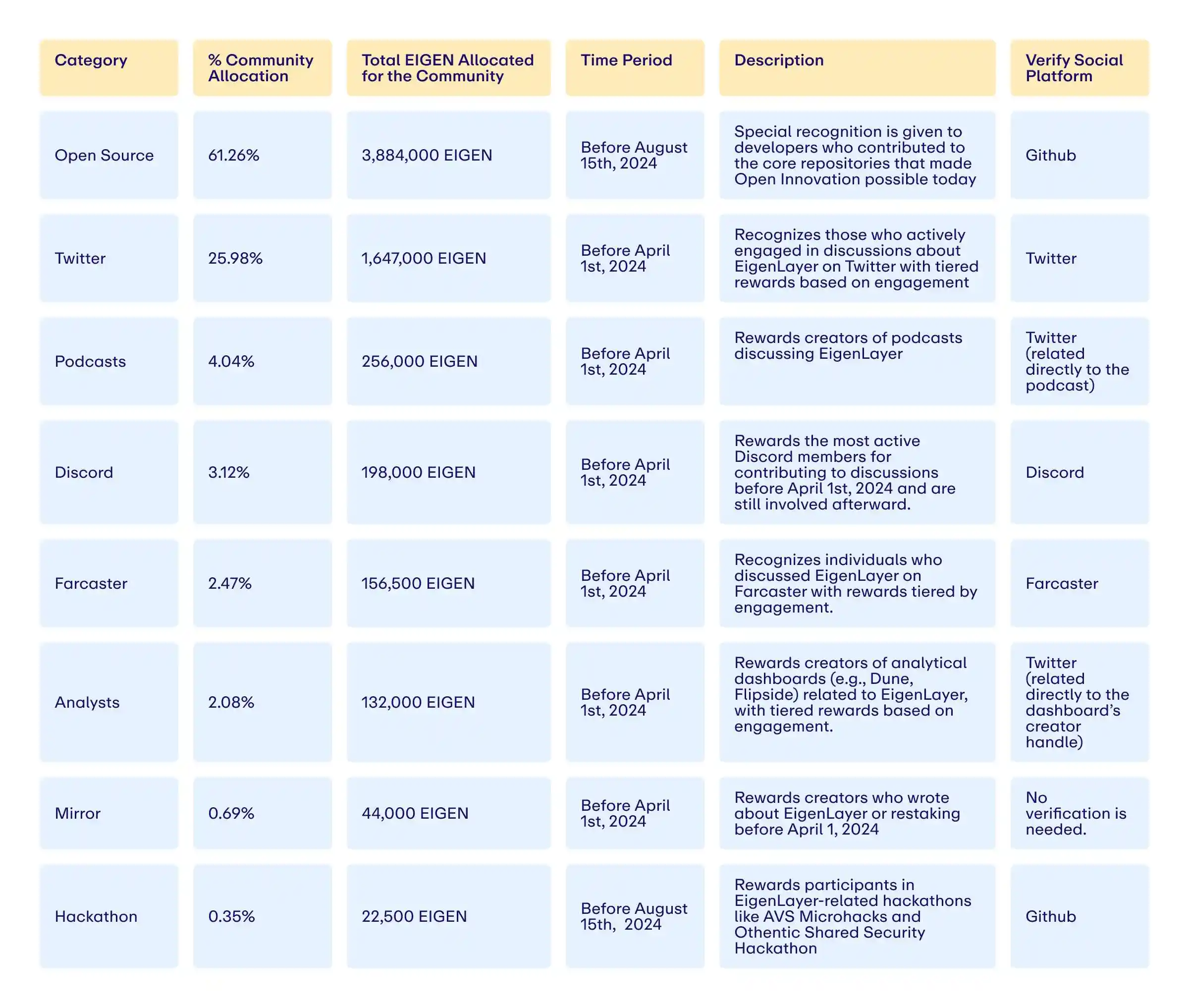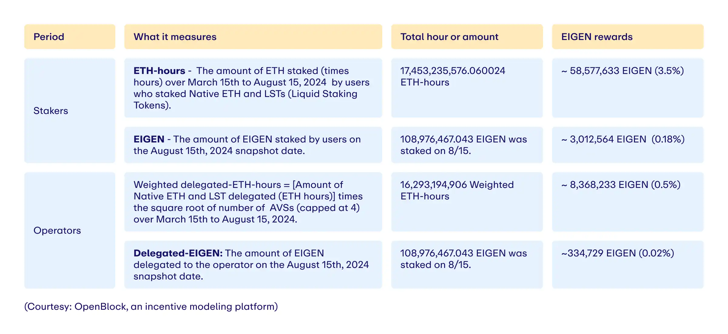 在本季中,EIGEN 代币将分发给以下三个主要类别: