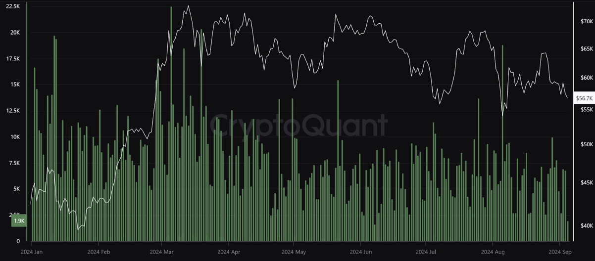 而在近期转出至交易所数量则无显著变化,只有在非交易日期间转出数量减少。在礼拜一到五每日转出数量约落在 7500~10000 之间,假日则是落在每天转出 2500 颗,先前约落在 3500~4500 颗。