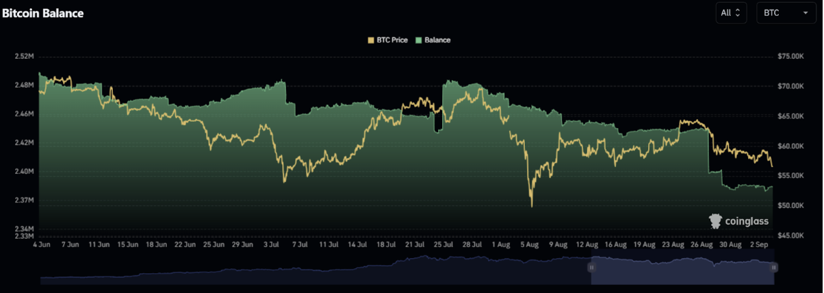 下图是近 3 个月的中心化交易所比特币余额变化,目前约为 240 万颗,创下近一年半以来新低,当中币安在近 30 天更是减少了约 53000 颗比特币。