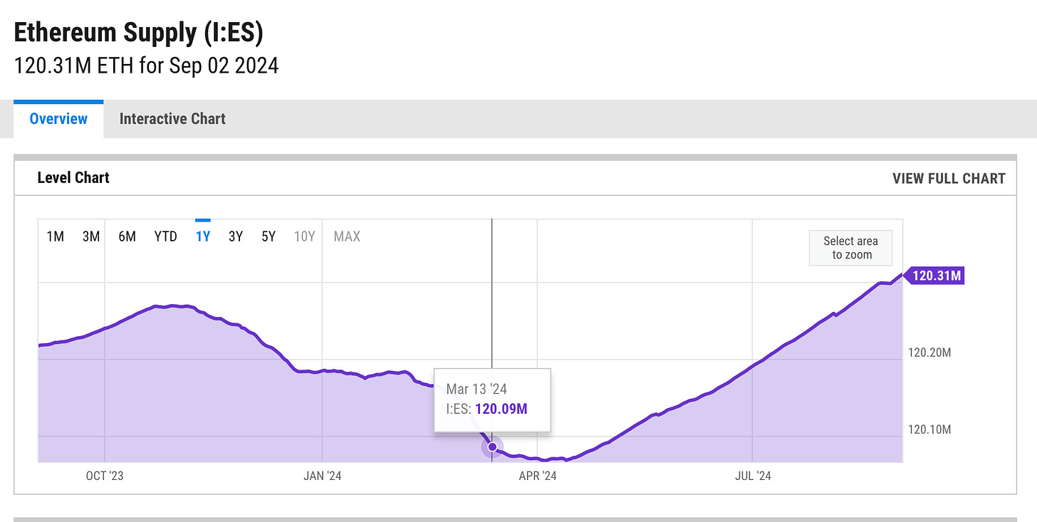ETH 的总供应量是没有上限的,在 PoS 机制下,ETH 的年发行量主要由参与质押的 ETH 数量和网络的整体活动水平决定。质押的 ETH 数量增加,发行量会相应增加,同时通过 EIP-1559 引入的销毁机制对发行量的增长起到了一定的抵消作用。EIP-1559 实施后,年发行率大约在 0.5-2% 之间(具体取决于质押 ETH 的数量和网络活动),区块的平均大小目标值为 15,000,000 Gas,以太坊平均出块时间 12.05s。ETH 会在燃烧的数量超过每年的发行量时开始通缩。