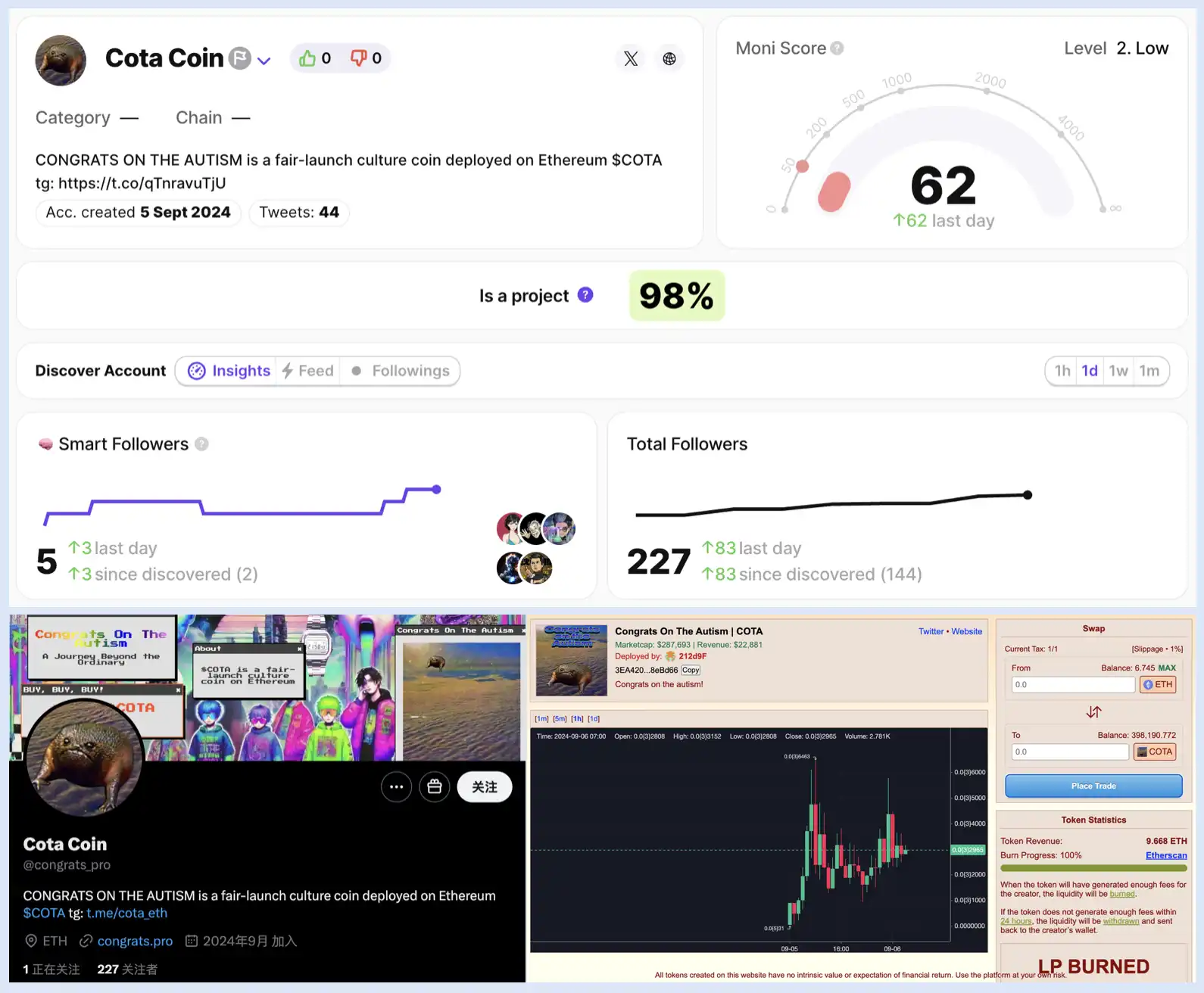 注:以下均为关注人数较少的早期项目,Rug 及合约风险极高,须谨慎参与,非投资建议