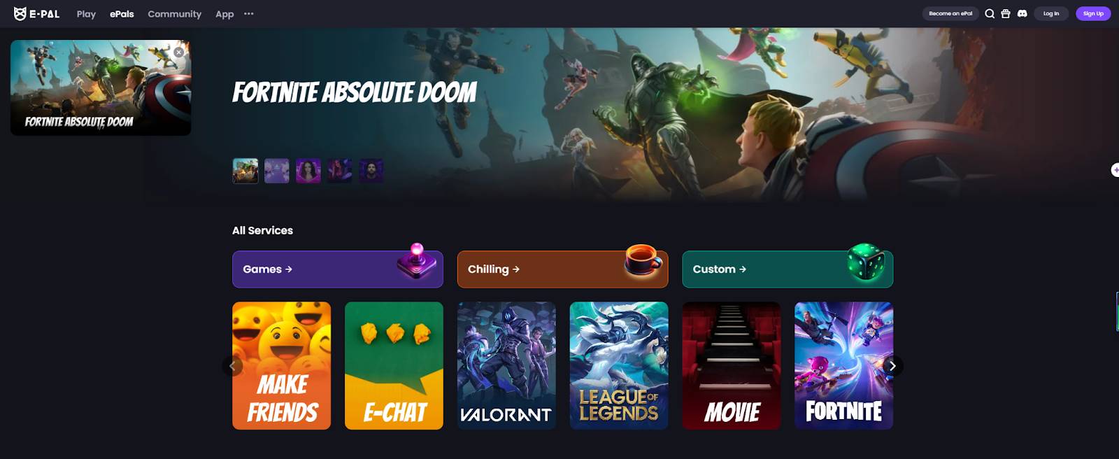 E-PAL 是一个全球性的线上陪玩平台,专注于为游戏玩家提供陪玩服务。用户可以在平台上找到陪玩者,这些陪玩者根据他们的技能和游戏类型,帮助玩家提升游戏体验或提供社交陪伴。E-PAL 不仅涵盖了各种主流游戏,例如《英雄联盟》、《Apex 英雄》、《Valorant》等,还包含了更多的社交化服务,如聊天、指导和社群活动。
